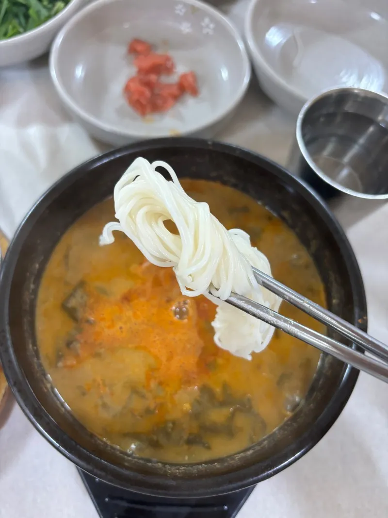 소면을 먼저 넣어서 추어탕과 먹으면 환상의 조합이랍니다♥