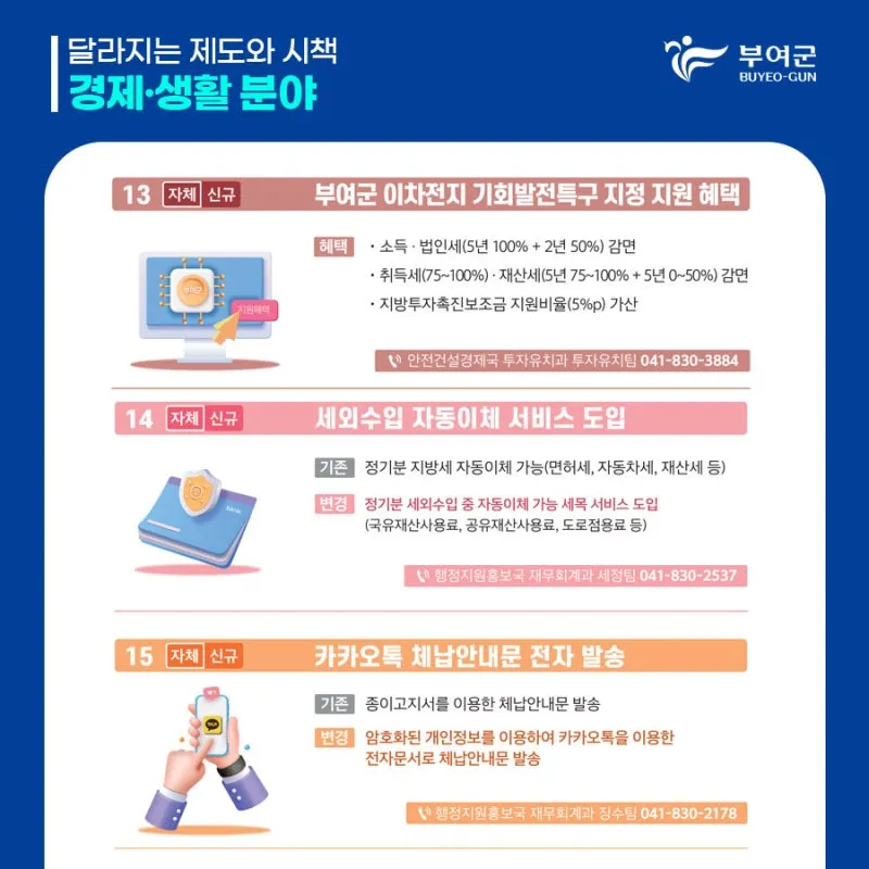 {"title":"📢2025년 부여군 달라지는 제도와 시책-경제·생활분야","source":"https://blog.naver.com/buyeoblog/223720312673","blogName":"부여군청","domainIdOrBlogId":"buyeoblog","nicknameOrBlogId":"부여군청","logNo":223720312673,"smartEditorVersion":4,"meDisplay":true,"lineDisplay":true,"outsideDisplay":true,"cafeDisplay":true,"blogDisplay":true}