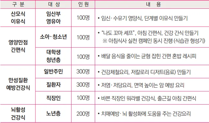 - 가족 요리 특강, 맞춤 요리 특강 등