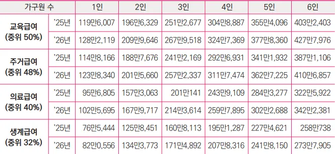- 기준 중위소득 인상에 따른 소득 기준 완화