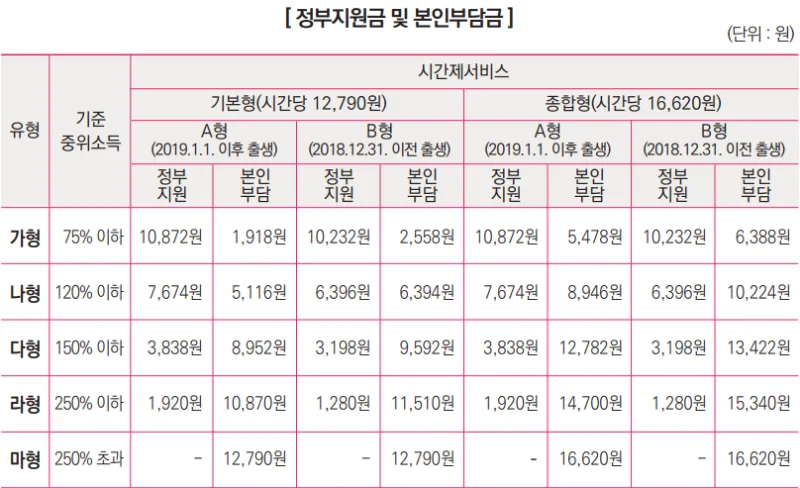 서비스 필요에 따라 대상자 선정(소득기준 없음)