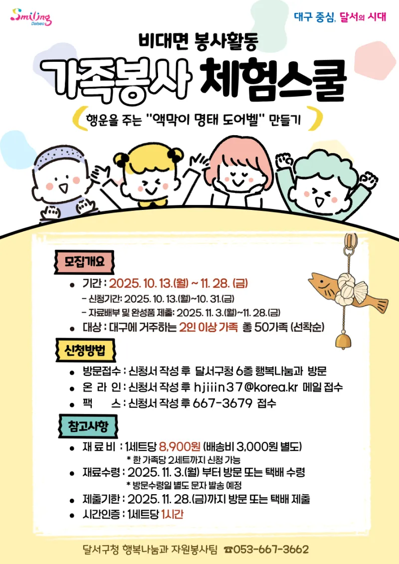 [대구 달서구 소식] 비대면 봉사활동 '가족봉사 체험스쿨' 참여 가족 모집