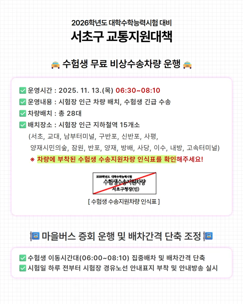 2026학년도 대학수학능력시험 대비 서초구 교통지원대책