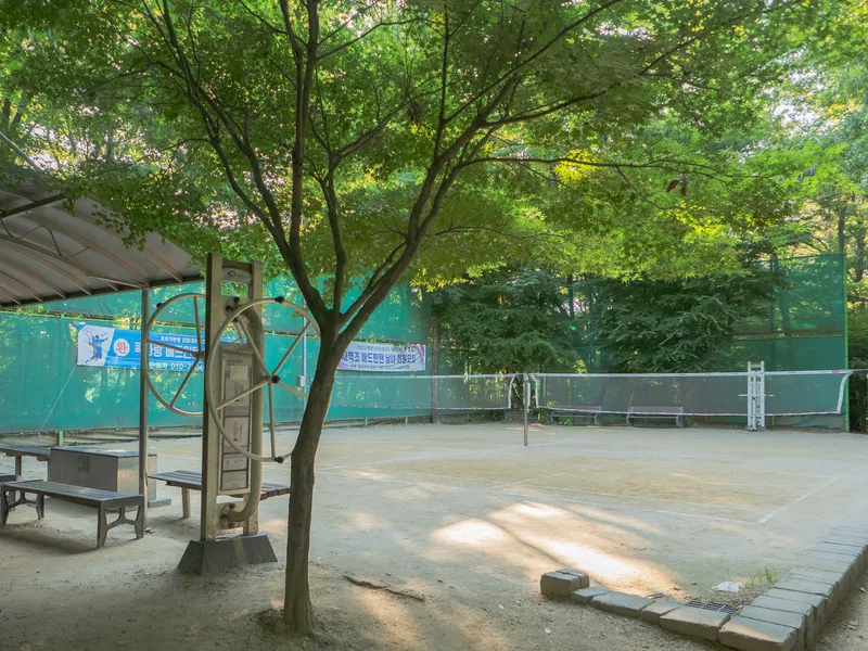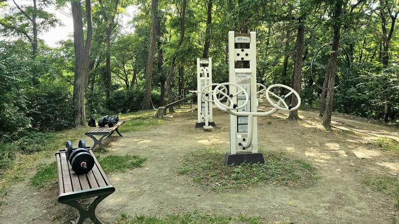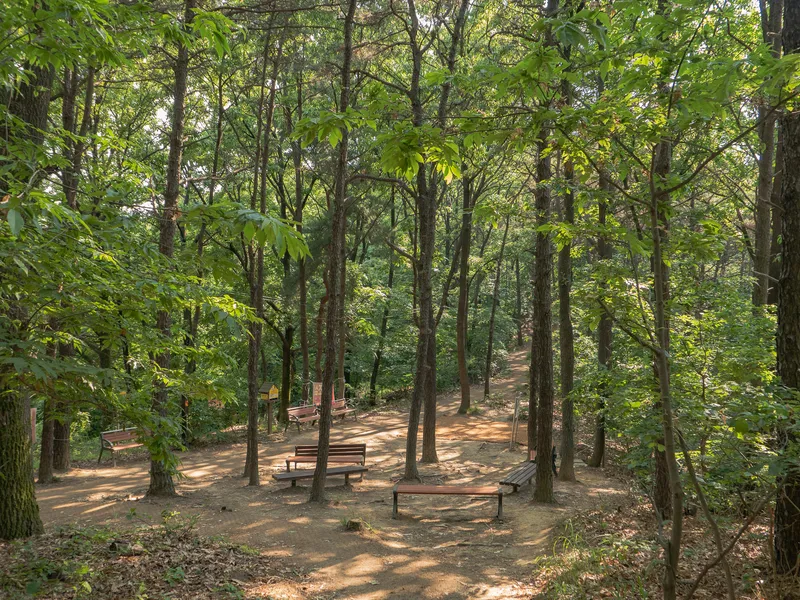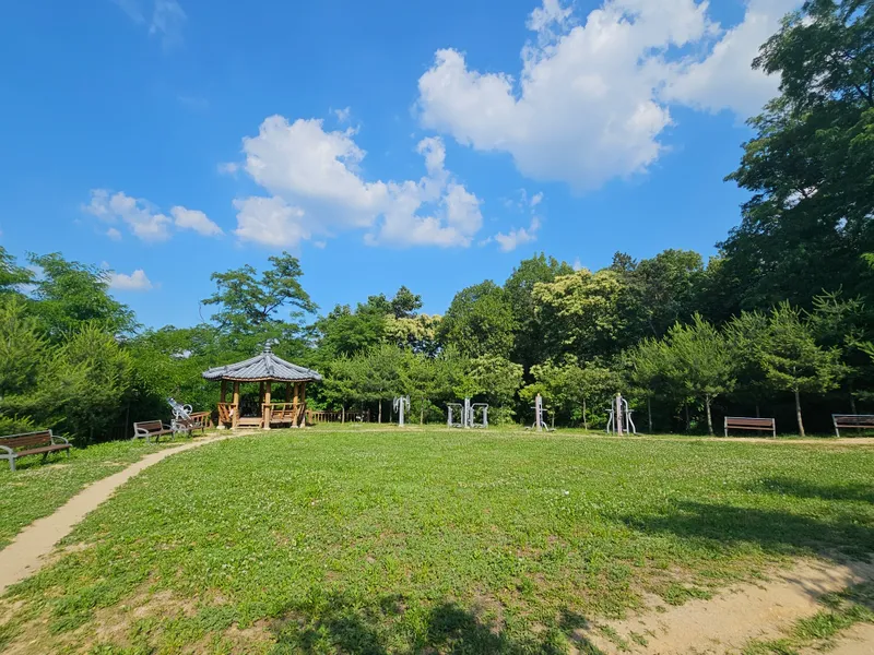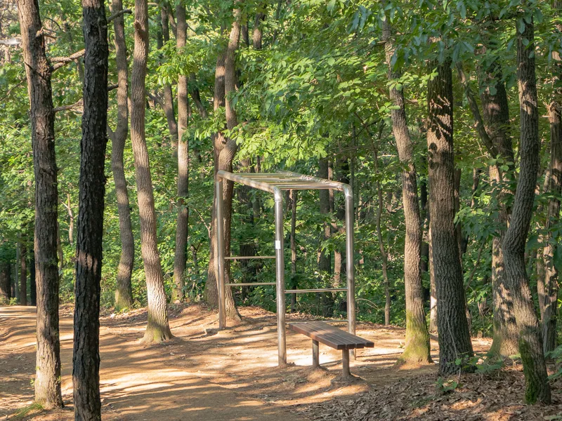 오른 지 얼마 지나지 않아 운동 기구들이 설치된 쉼터가 나왔는데요,