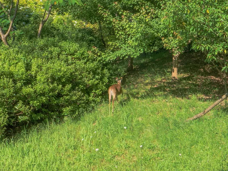 그 아래로 고라니 한 마리가 재빠르게 지나가는 바람에