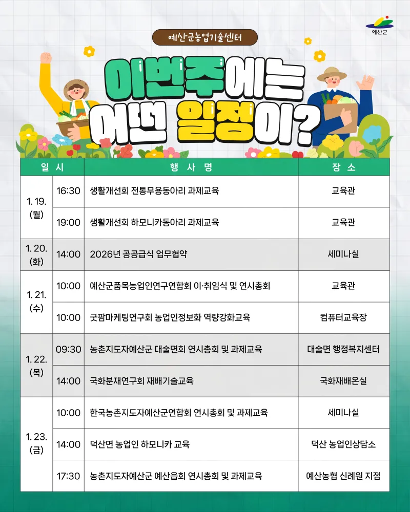 📍예산군농업기술센터 '주간일정'을 알려드립니다!
