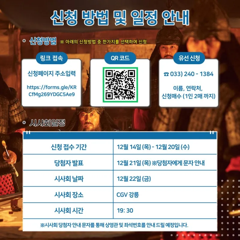 영화 <노량:죽음의 바다> 강릉 무료상영회 신청하세요!