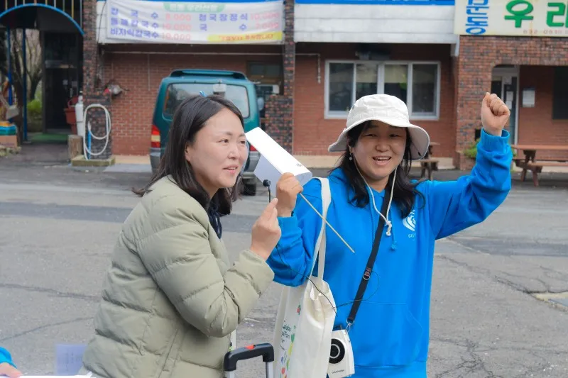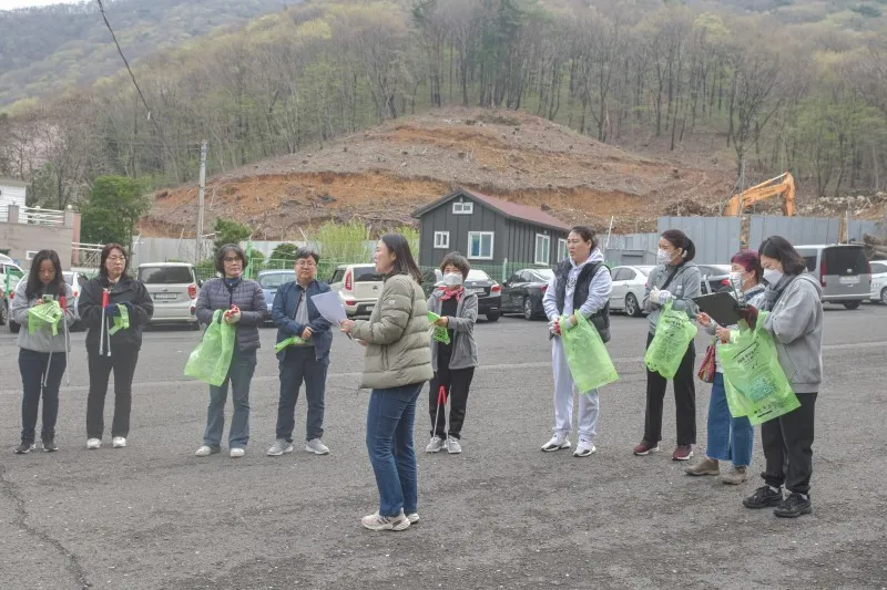 아낄거제 모임을 지지해주시는 거제시 사회복지관 강행이 관장님의 응원의 말씀을 듣고 항상 활동을 이끌어주시는 김선영 과장님의 화이팅과 함께 본격적으로 프레셔스깅을 준비합니다. 환경 동아리들의 연합 모임인 만큼, 대부분 개인 집게와 청소할 때 사용하는 장갑을 가져와서 준비하시는 모습이 참 인상적이었습니다.