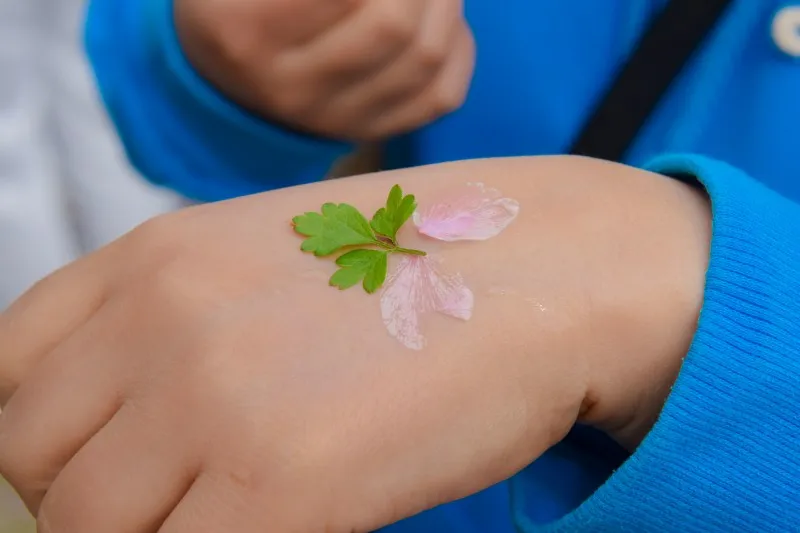 물을 이용하여 손등이나 팔에 예쁜 그림을 만드는 작업이었습니다.