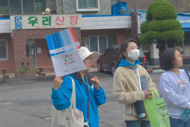 그리고 오늘의 프레셔스깅을 이끌어주실 주최 모임인 "거제로(GOSERO)” 입니다. 오늘 모임 시작에 앞서서 프레셔스깅의 의미 설명과, 기후 변화의 경각심을 일깨워주는 Warming Stripes를 다시금 설명해주는 시간이 있었습니다. 먼저 프레셔스깅은 영어 (preicious+jogging)의 합성어로 자연관찰과 쓰레기를 줍는 플로깅을 함께할 수 있는 활동입니다. 오늘 문동 폭포 프레셔스깅은 자연관찰과 간단한 미술활동이 함께하는 플로깅이 될 것입니다.