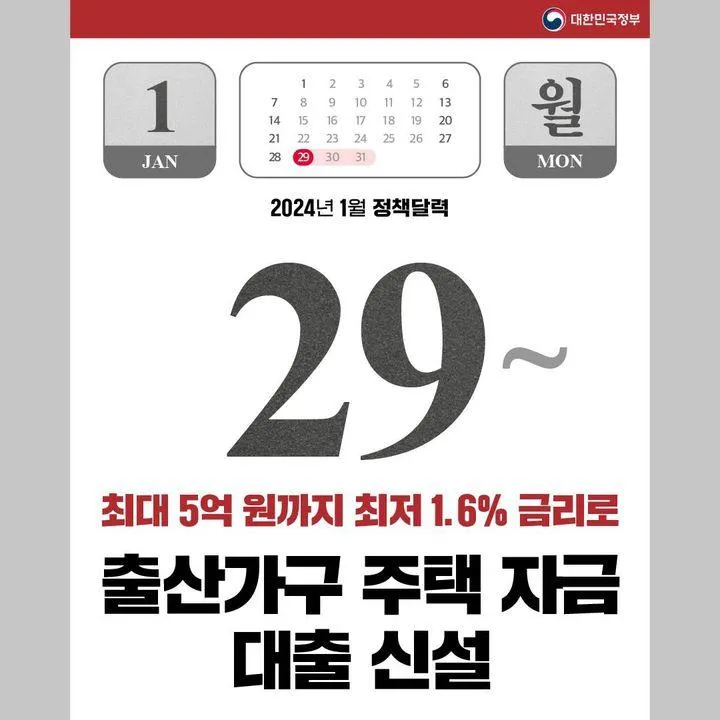 📌 출산가구 주택 자금 대출 신설 (1.29.~)