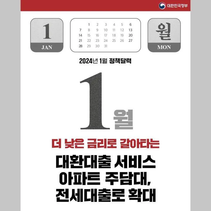 📌 더 낮은 금리로 갈아타는 대환대출 서비스 아파트 주담대, 전세대출로 확대 (1.1.~)