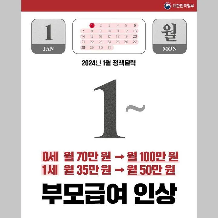 📌 부모급여 인상 (1.1.~)