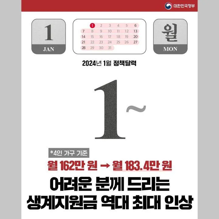📌 어려운 분께 드리는 생계지원금 역대 최대 인상 (1.1.~)