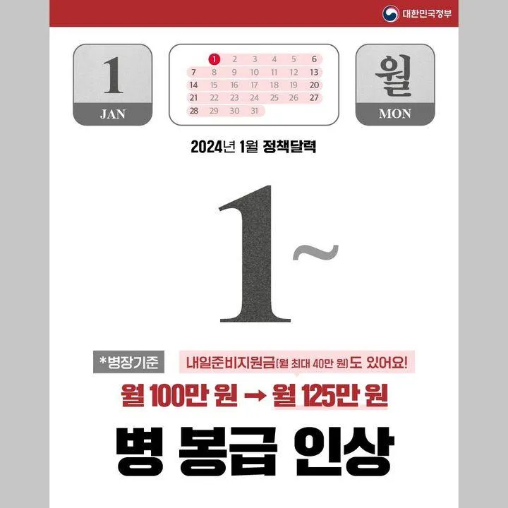 📌 병 봉급 인상 (1.1.~)