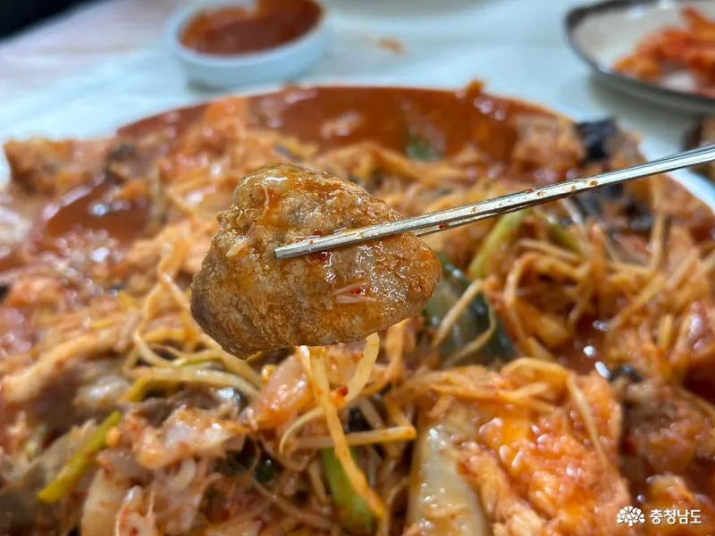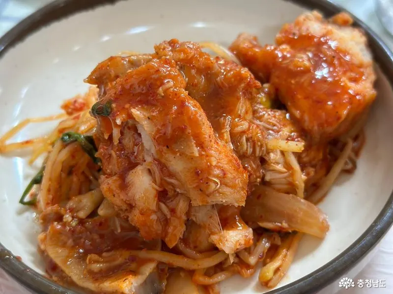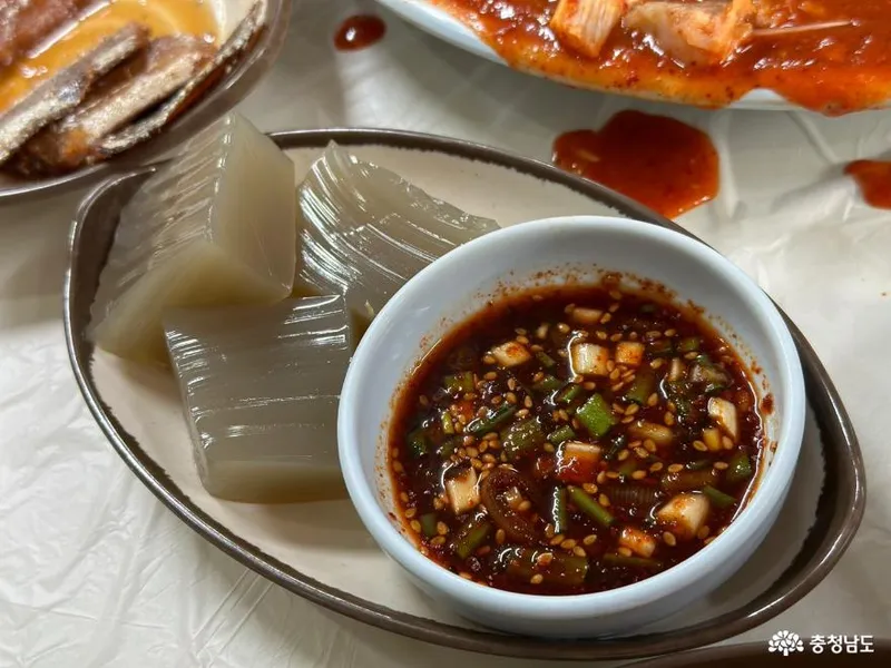 아쿠탕과 찜을 주문했을 분인데 반찬이 10가지가 넘게 나오는 곳인데, 먹다가 급하게 사진을 찍는 바람에 박대묵과 꽃게무침 밖에 남기지 못하였네요. 반찬의 갯수는 전라도처럼 인심이 푸짐하지만 젓갈향이 없고 슴슴한 맛이라 집에서 먹는 집밥 느낌이 강했어요.