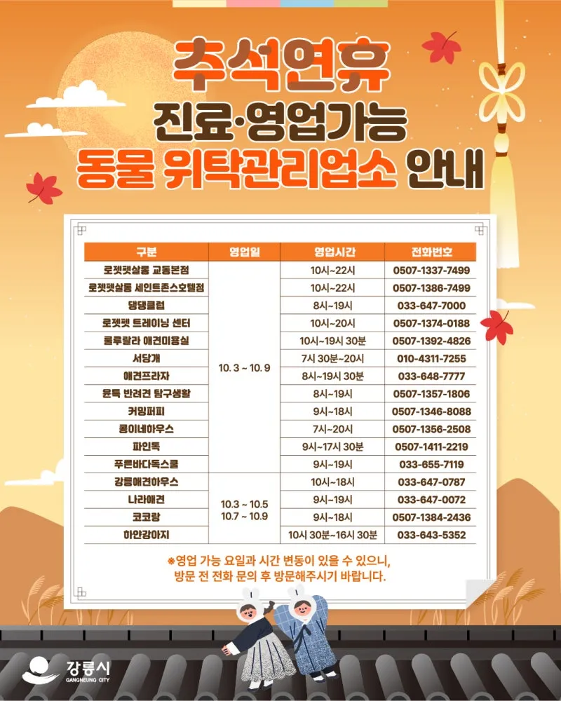 4️⃣ 추석연휴 진료・영업가능 동물 위탁관리업소 안내