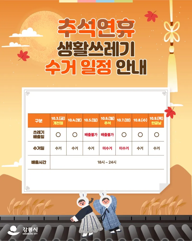 5️⃣ 추석연휴 생활쓰레기 수거 일정 안내