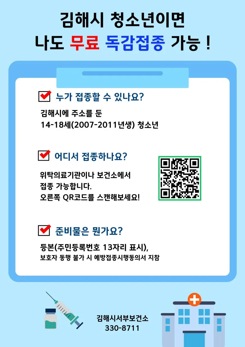 💡김해시 청소년이라면 누구나 '무료 독감접종' !!