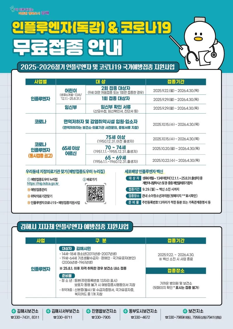2025-2026절기 김해시 독감·코로나19 무료 예방접종 총정리