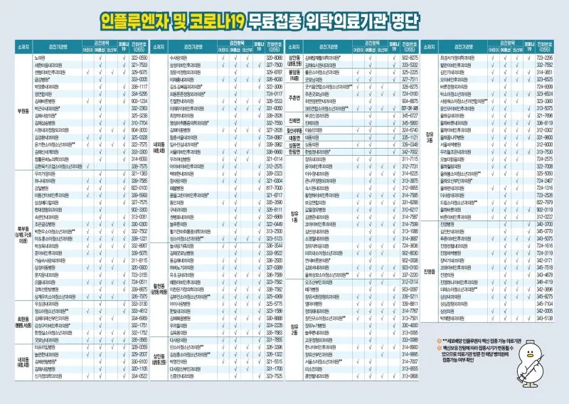 대상별 무료접종 확인하셔서 가까운 의료기관에서 독감 & 코로나 예방하세요!!