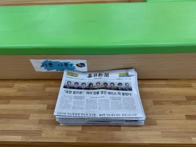 도서관 한편에 가지런히 놓인 조간신문 한 부.