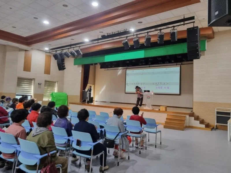 대강당에서는🎙️노래 교실이 열리고 있었어요.