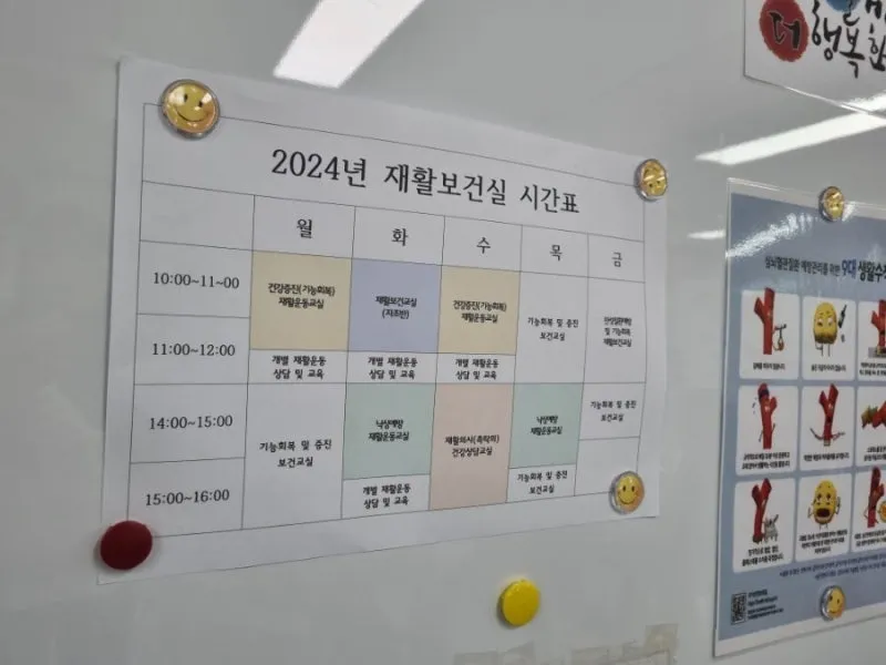 건강 교실, 운동 교실, 재활보건실, 상담실 등