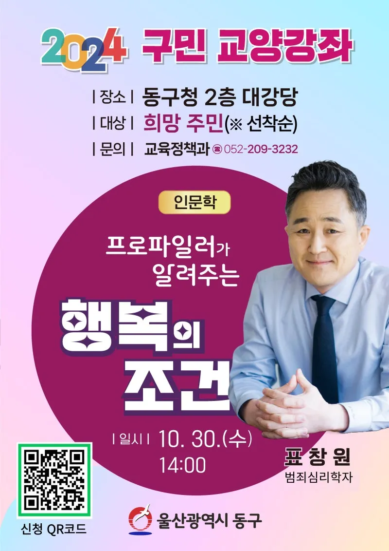 울산 동구 2024년 구민교양강좌 "프로파일러가 알려주는 행복의 조건" (강사 표창원)