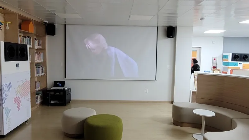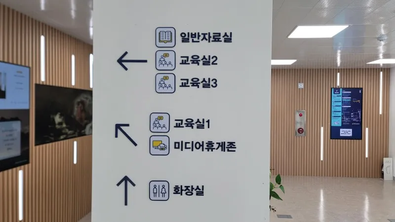2층에는 일반 자료실, 미디어 열람 공간, 3개의 교육실로 구성되어 있습니다.