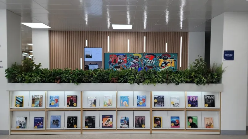 각종 잡지가 가지런히 배열되어 있는데