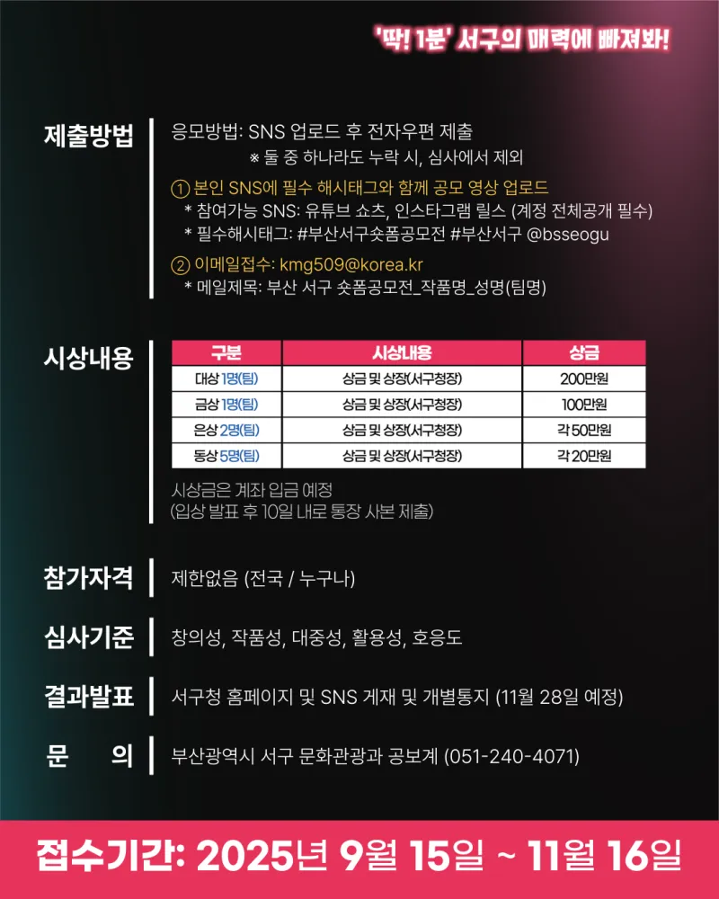 *필수 해시태그: #부산서구숏폼공모전 #부산서구 @bsseogu