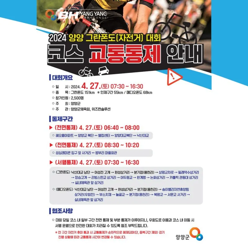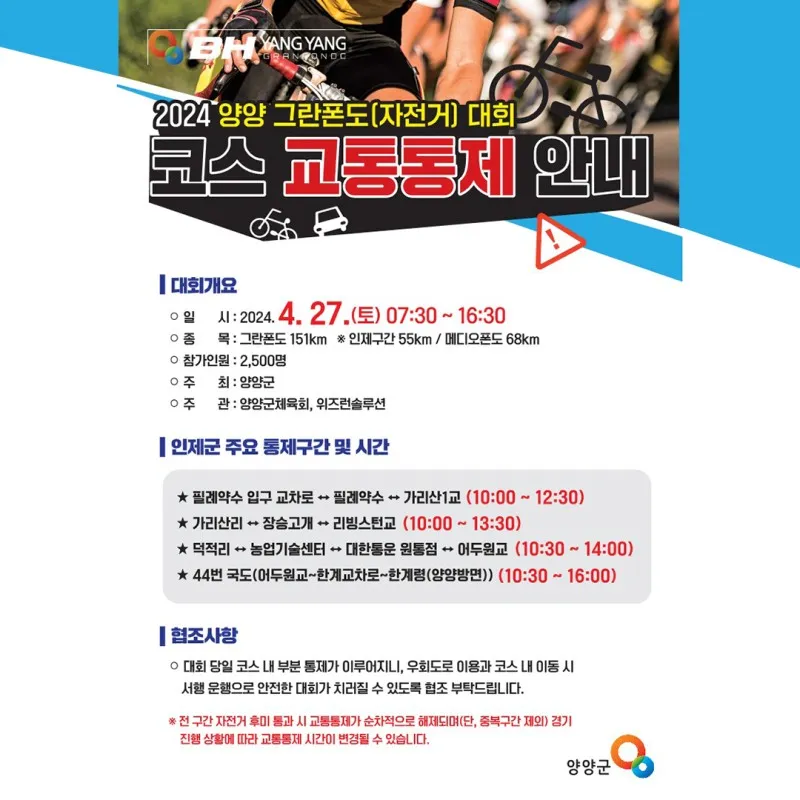 2024 양양 그란폰도(자전거) 대회 코스 교통통제 안내