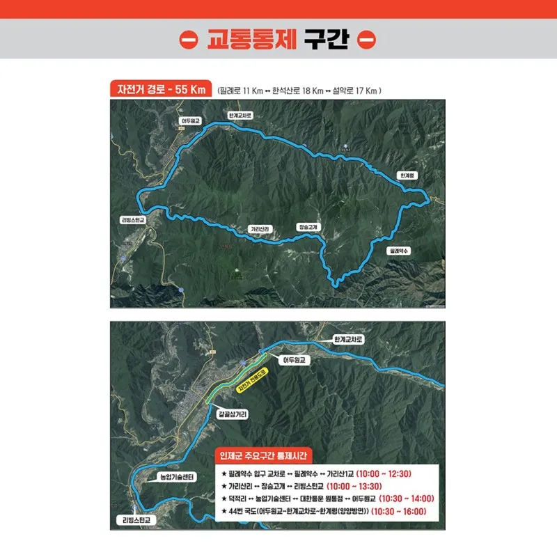 · 서행통제(07:30~16:30) : 대회 코스 구간(안내문 참조)