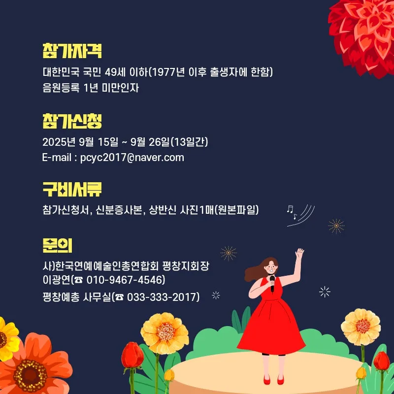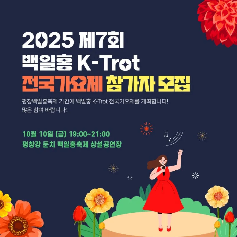 평창백일홍축제 기간에 백일홍 K-Trot 전국가요제를 개최합니다!