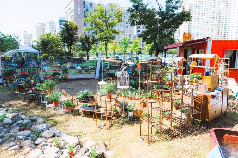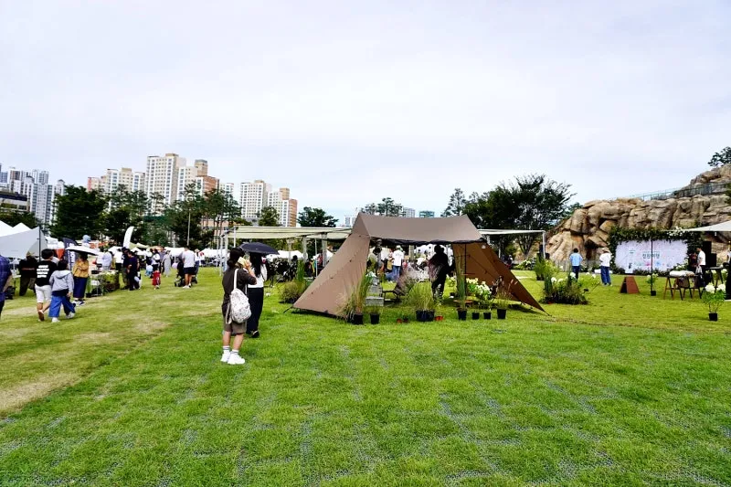 체험부스가 이어집니다. 중앙공원 초입으로는 화훼 판매, 리버마켓존과 작가정원까지로