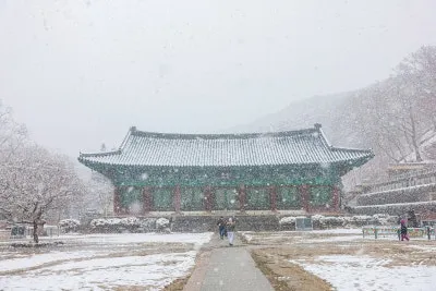 제가 금산사를 방문한 날은 흰 눈이 여기저기 쌓이면서 아름다운 설경이 연출되었습니다.