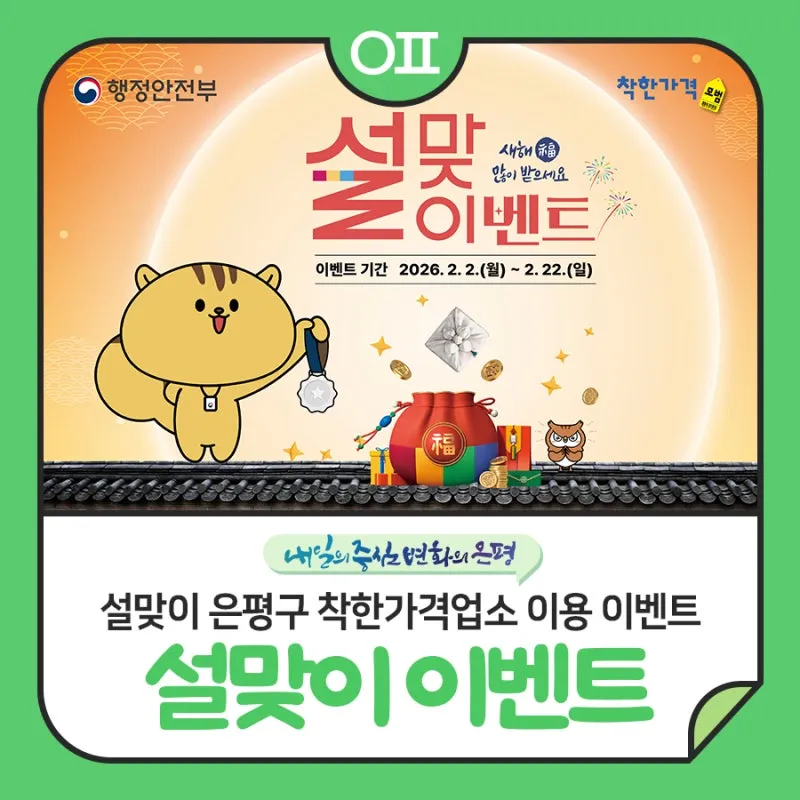 설맞이 은평구 착한가격업소 이용 이벤트 "은평구 착한가격업소 이용하고 은메달 받자!"(ft. 카드사별 추가 이벤트)