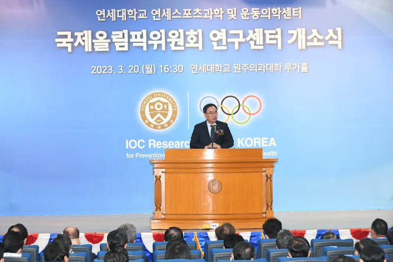 20일 국제올림픽위원회 연구센터 개소식이 원주세브란스기독병원 연세대 원주의대 루가홀에서 있었다.