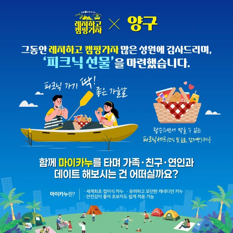 레저하고 캠핑가자!X양구 당일 프로그램(마이카누 체험) 모집!