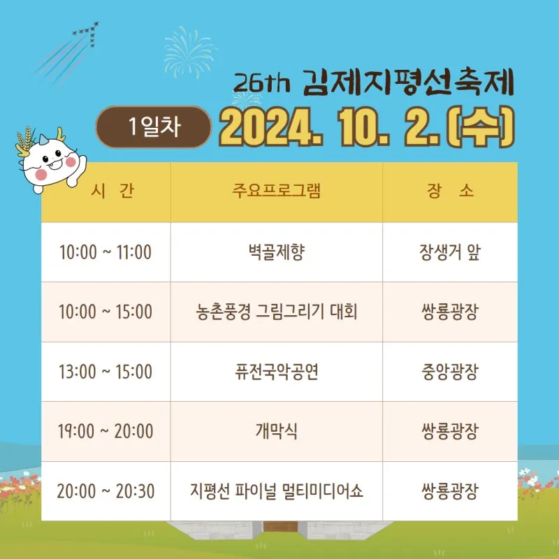 김제지평선축제 10월 2일 1일차 일정 놓치지 말자