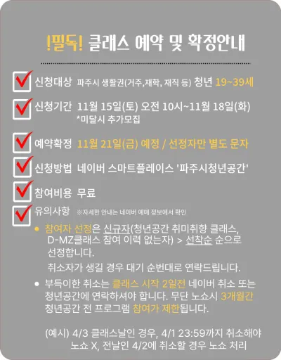 파주 청년 D-MZ클래스 12월 참여자 모집 안내