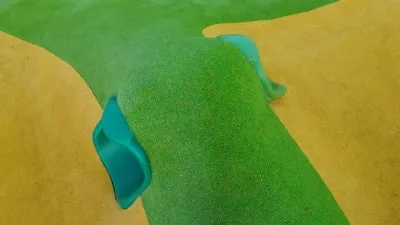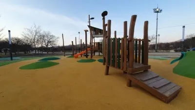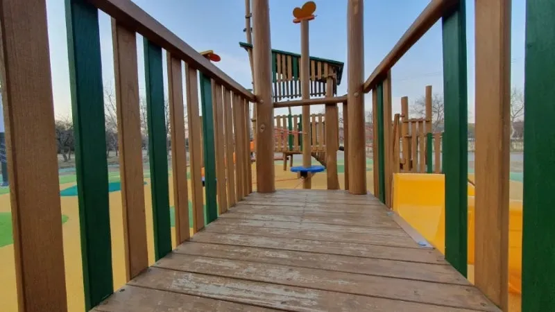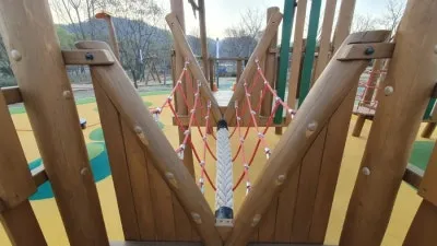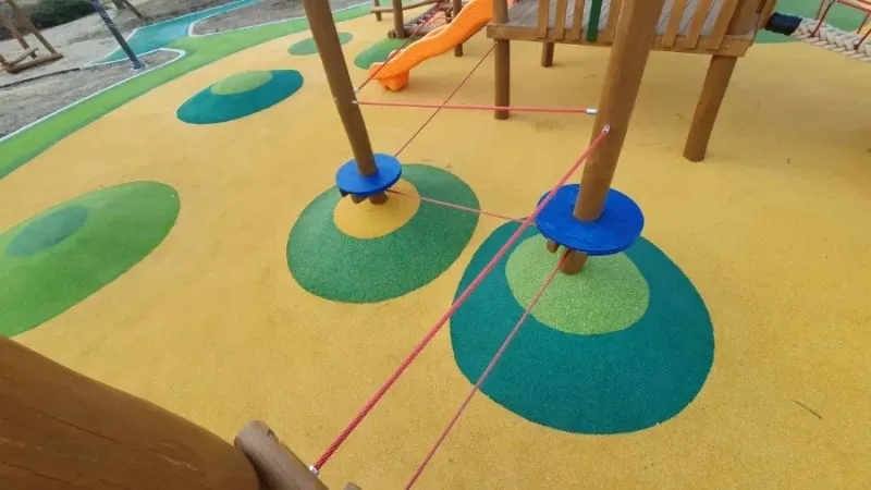 자라섬 어린이놀이터의 중심부에는 아이들의 호기심과 모험심을 자극할 수 있는 다양한 놀이 요소들이 집약된 메인 프레임이 조성되어 있습니다. 이 공간은 단순히 미끄럼틀 몇 개만 있는 구조가 아니라, 연령대별로 즐길 수 있는 구성을 갖춘 것이 특징인데요, 미끄럼틀은 유아용과 초등 저학년 아동용으로 구분되어 있어 어린아이부터 조금 더 활동적인 아이들까지 모두 안전하게 이용할 수 있도록 배려되어 있습니다. 프레임 내부에는 징검다리와 외나무다리, 경사면을 따라 설치된 로프 오르막길, 외줄다리 등 아이들이 몸을 움직이며 균형감각과 도전정신을 함께 키울 수 있는 놀이 요소들이 다채롭게 배치되어 있습니다. 이러한 구성은 단순한 놀이터가 아닌 모험형 체험 공간으로서의 기능을 수행하고 있다는 점에서 상당히 인상적인 부분입니다(참고로 놀이터는 관련 법령에 따라 어린이안전검사까지 모두 인증을 마쳐야만 운영될 수 있는 시설로서 자라섬어린이 놀이터는 해당 검증을 모두 완료받은 것으로 보이지만, 아이들(특히 영유아)이 해당 시설을 이용할 때는 꼭 보호자분들께 함께 동행하여 낙상 부딪힘 등의 안전사고가 발생하지 않도록 주의를 기울여주시길 바랍니다.)
