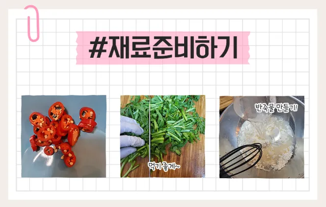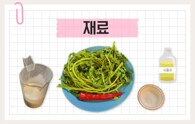 쑥갓, 홍고추 1개, 부침가루 250g, 소금, 식용유