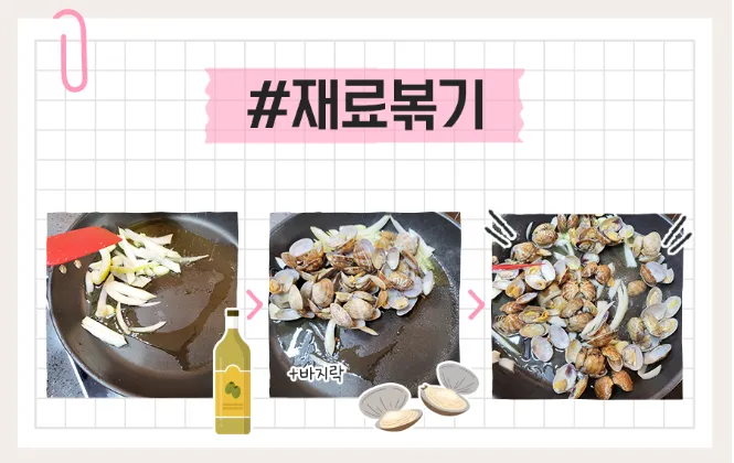 ※ 바지락을 넣을 때 삶지 않고 볶는 경우가 많지만,