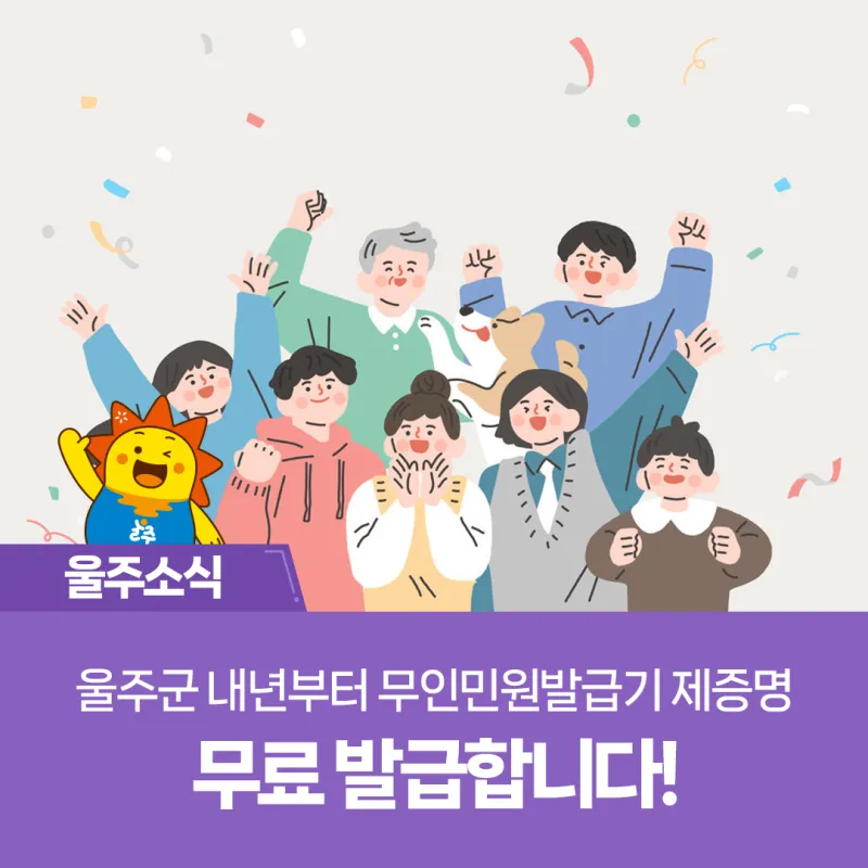 울주군이 내년 1월 1일부터 울산 지자체 중 최초로 관내 운영 중인 무인민원발급기의 민원 증명 발급 수수료를 전면 무료화합니다!