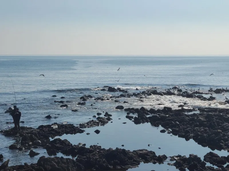 걷다 보면 근처 양식장에서 물을 내보내거나 용천수로 인해 바다에서 물이 퐁퐁 솟아오르는 신기한 광경을 볼 수 있어요. 물이 솟아오르는 곳에는 낚시하시는 분들과 다양한 바다 새들도 관찰해 볼 수 있고요!