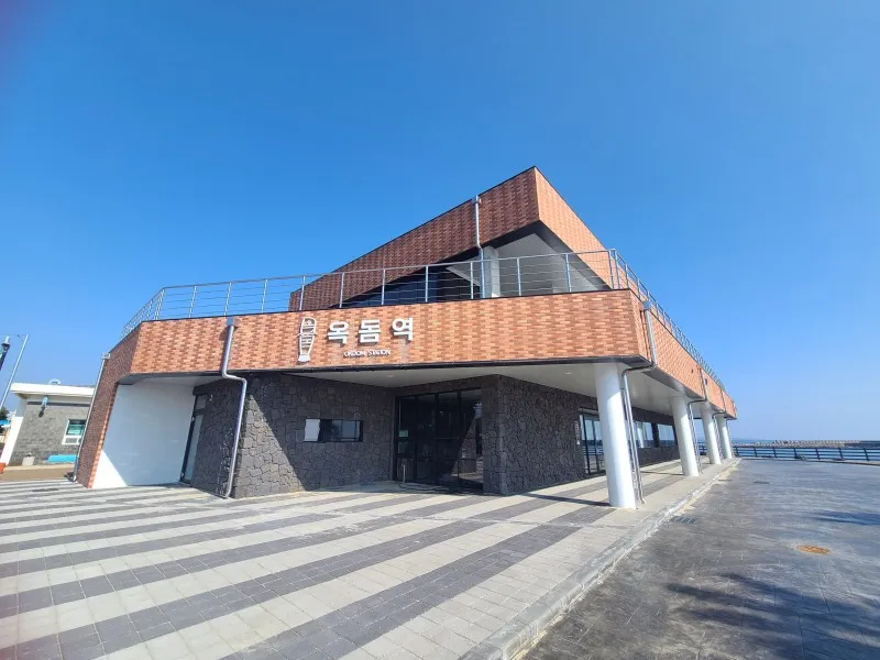 그리고 간이 옥돔역의 새로운 변신 옥돔역 건물이 준공됐어요! 너무나 아쉽게도 제가 방문했을 당시엔 오픈하지 않았는데요.
