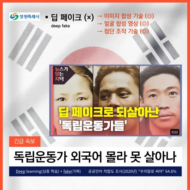 ✔ 딥 페이즈(deep fake) → 이미지 합성 기술/얼굴 합성 영상/첨단 조작 기술