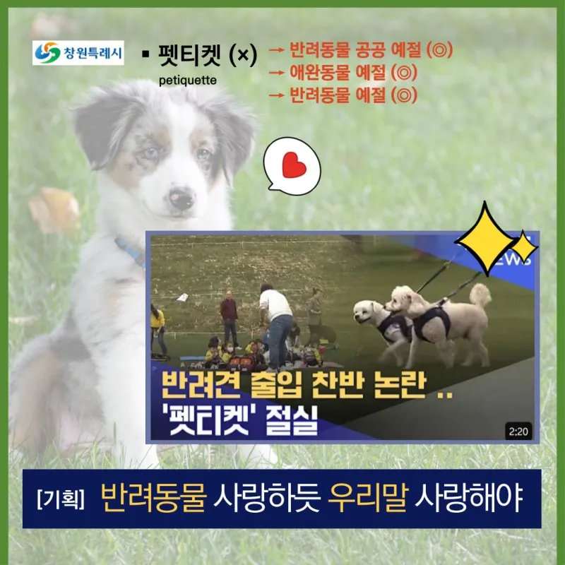✔ 펫티켓(petiquette) → 반려동물 공공 예절/애완동물 예절/반려동물 예절